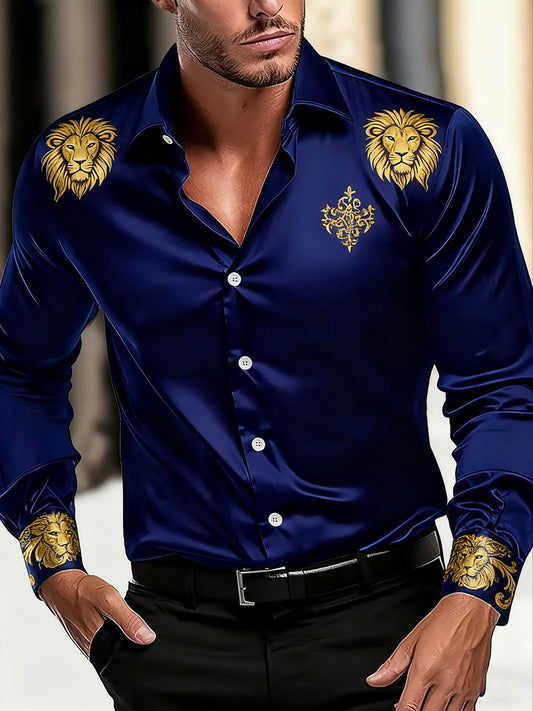 Retro τοτέμ τυπωμένο casual μακρυμάνικο πουκάμισο