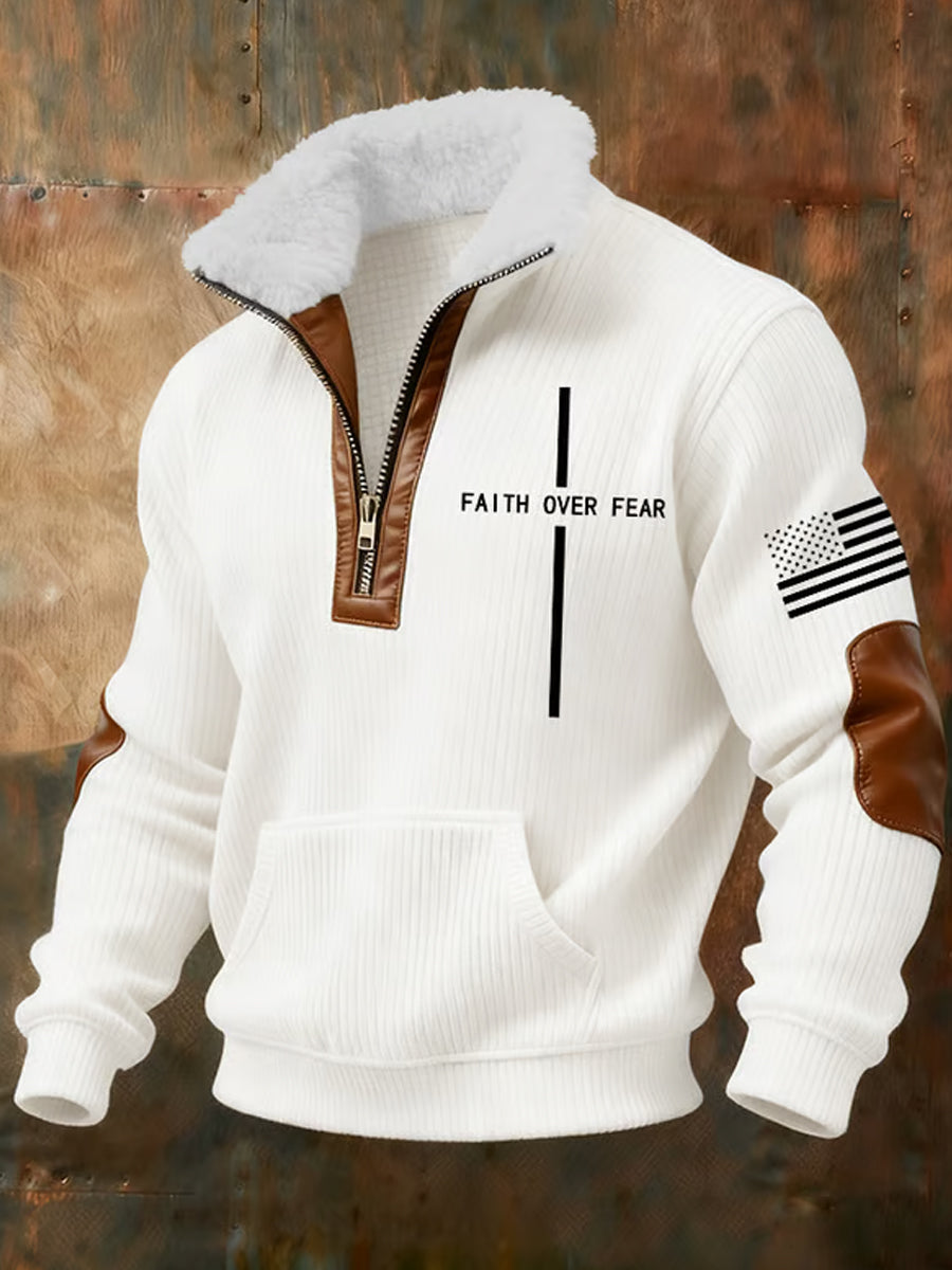 Ανδρικά ρετρο καλλιτεχνική πίστη Casual Παχύ Φούτερ με γούνα γιακάρο