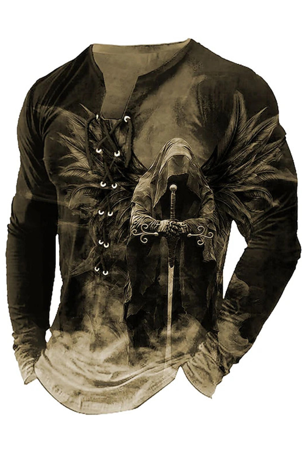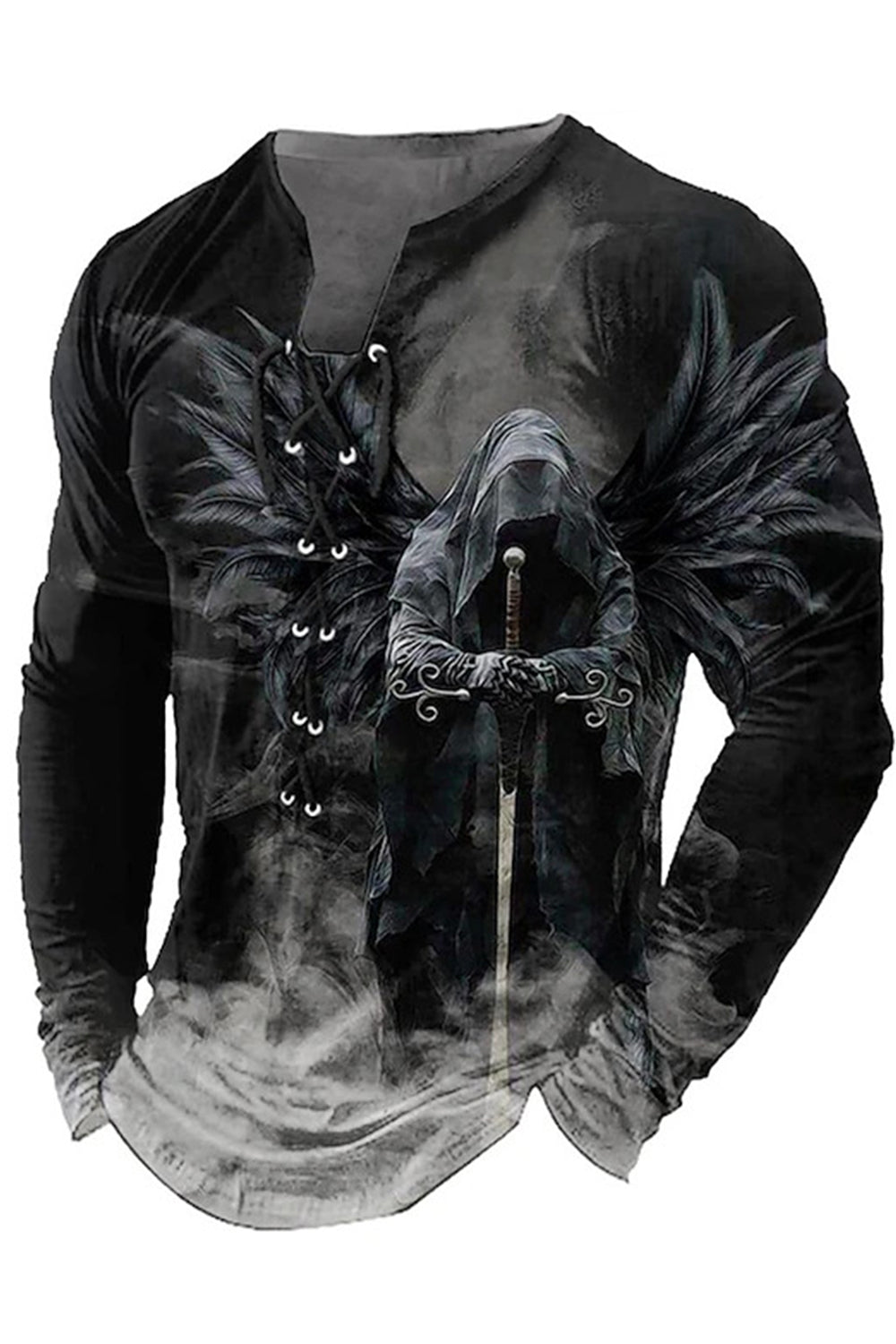Ανδρική μόδα V-τρεχεσμένο κορδόνι 3D Εκτύπωση Εξωτερική Καθημερινή μακριά μανίκι πουκάμισα