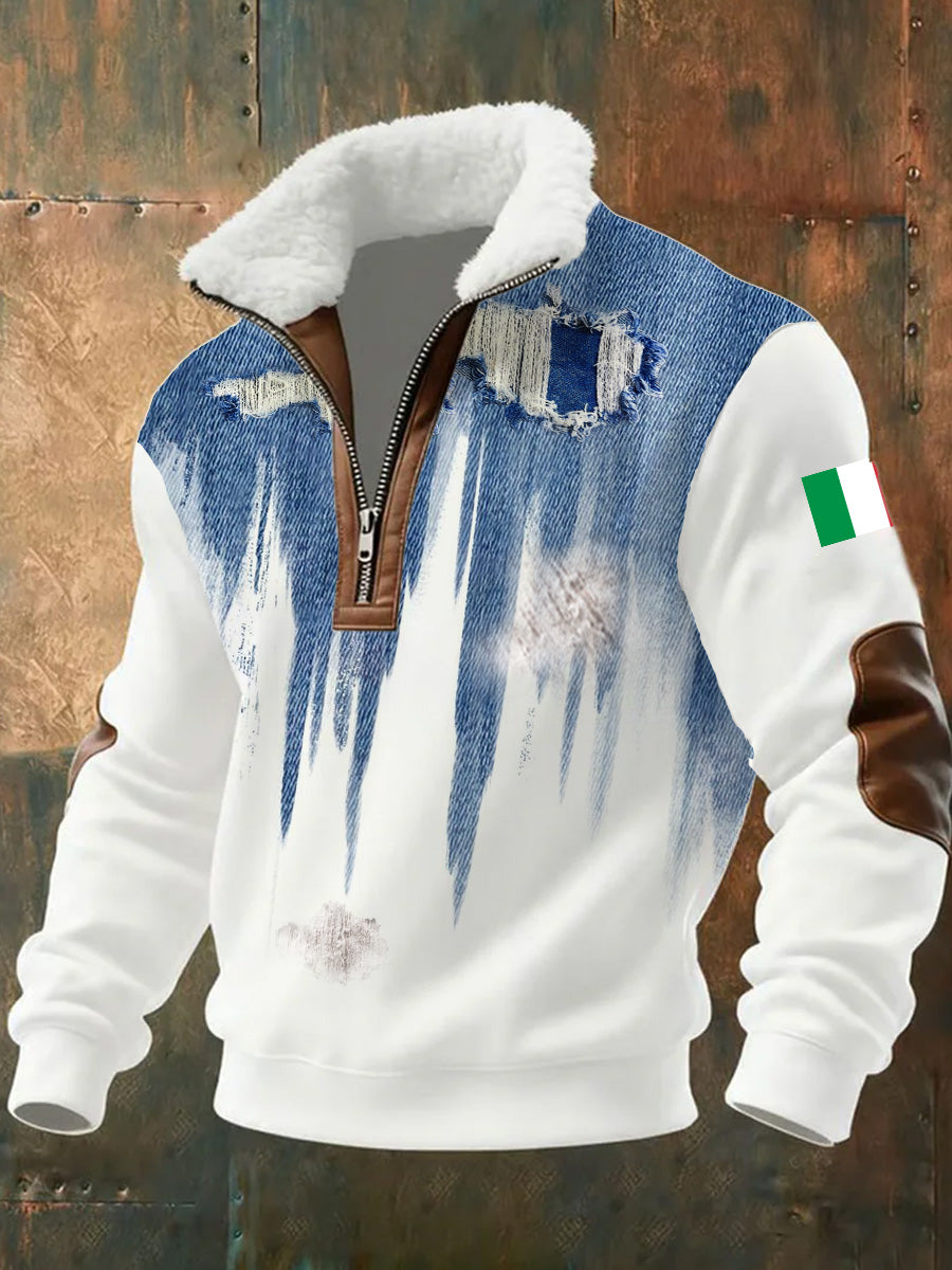 Ανδρικά Vintage ιταλική τέχνη εκτύπωση αναμνηστικό γούνα κολάρο