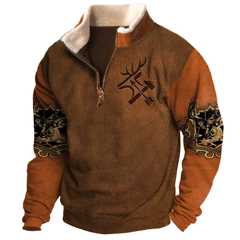 Ανδρικά Retro Western Εκτύπωση ψηλό λαιμό μισό Zip μακριά μανίκι πάνω από το κορυφαίο