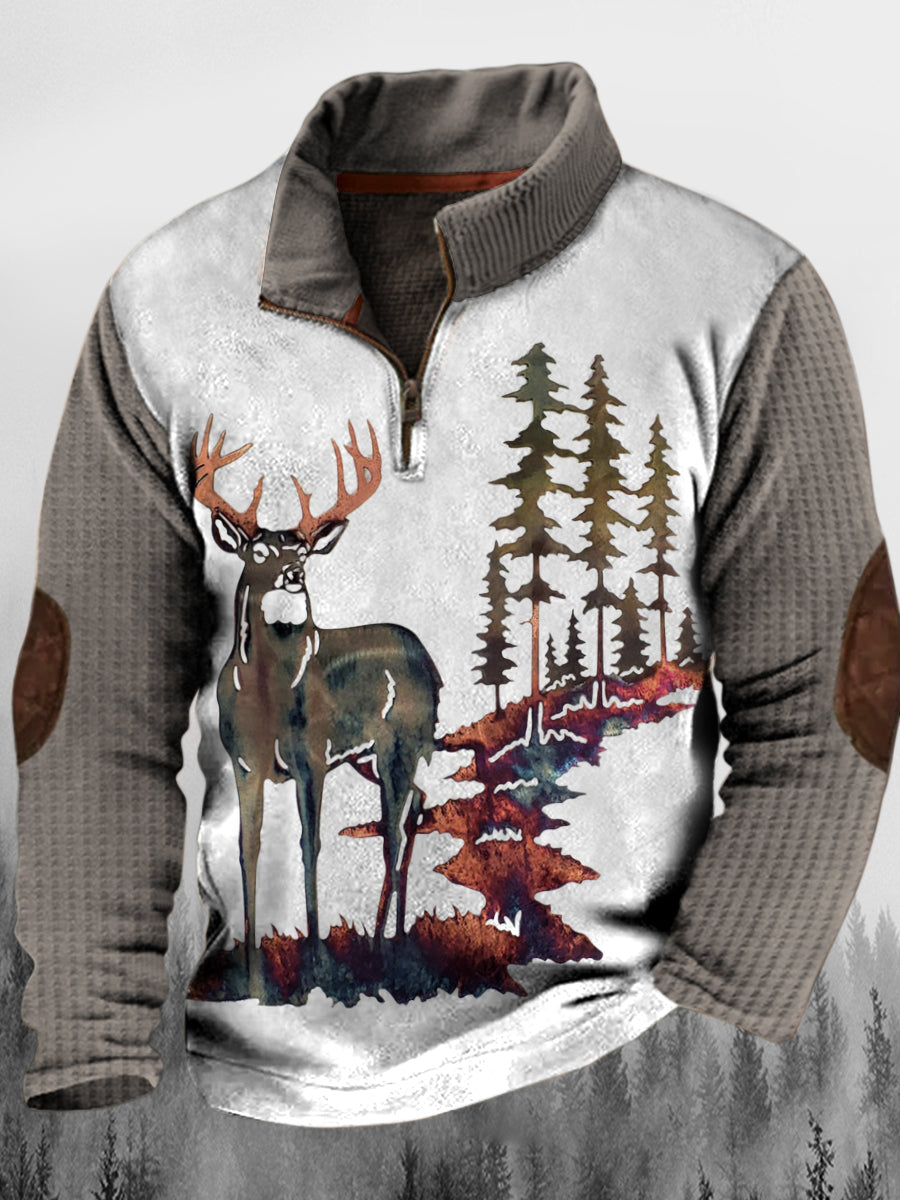 Ανδρική δυτική ελαφρά περπάτημα στο δάσος εκτύπωση stand κολάρο κουμπί φλουδισμένο υπαίθριο