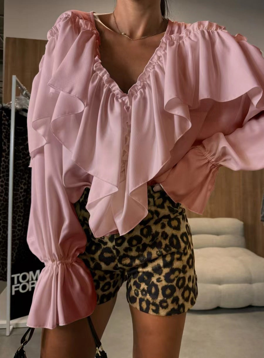 Γυναικείο στερεό χρώμα σχέδιο μόδας μακριά μανίκι πουκάμιση