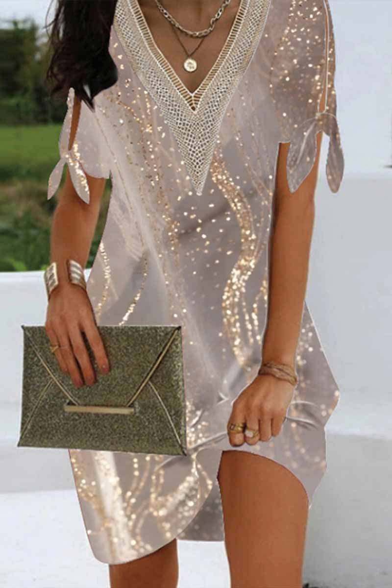 Γυναικείο περιστατικό V λαιμό υγρό τέχνη Εκτύπωση κομψή μίνι φόρεμα