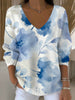 Γυναικεία καλλιτεχνική μπλε Floral V - λαιμό πουλόβερ