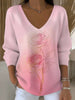 Γυναικείο κομψό ροζ τριαντάφυλλο V - λαιμό πουλόβερ
