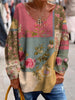 Γυναικείο Vintage τέχνη Floral Εκτύπωση άνεση κορυφή