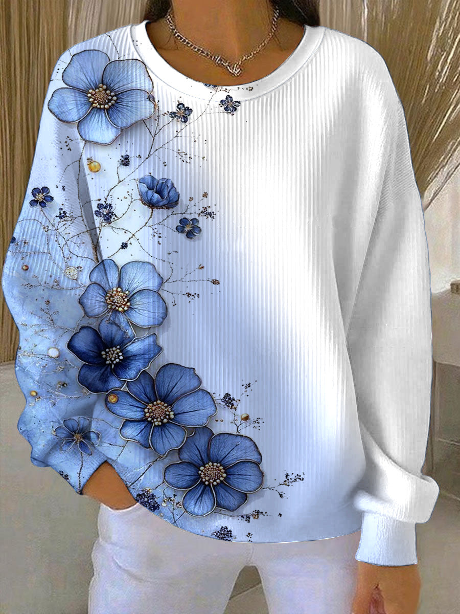 Γυναικείο γυναικείο μπλε λουλούδια εκτύπωση φουδάκια