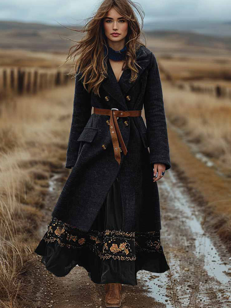 Γυναικείο Ρέτρο Μποέμ διπλό σπασμένο φθινόπωρο και χειμερινό μαλλί παλτό