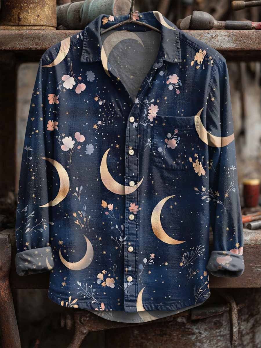 Retro Σελήνη εκτύπωση Casual μακριά μανίκι πουκάμισα