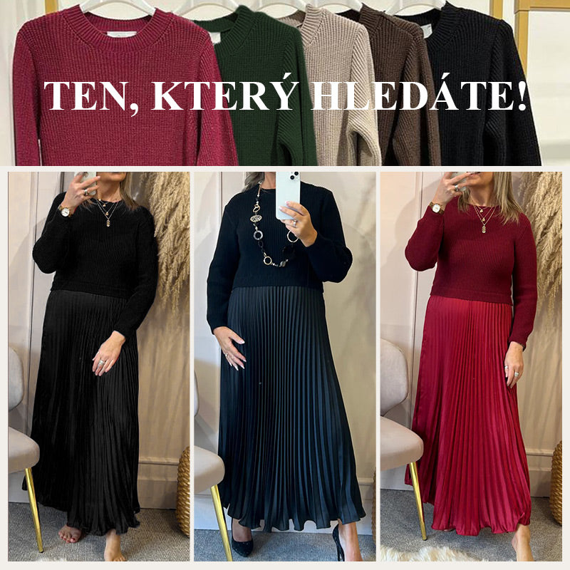 Γυναικεία κομψά και κομψά φορέματα με στρογγυλό ντεκολτέ και πλισέ