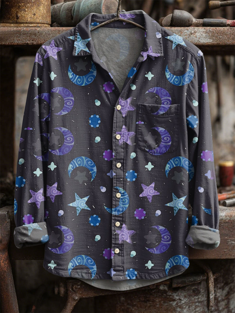 Vintage Αστέρι και Σελήνη Καθαρό μακριά μανίκι πουκάμισα